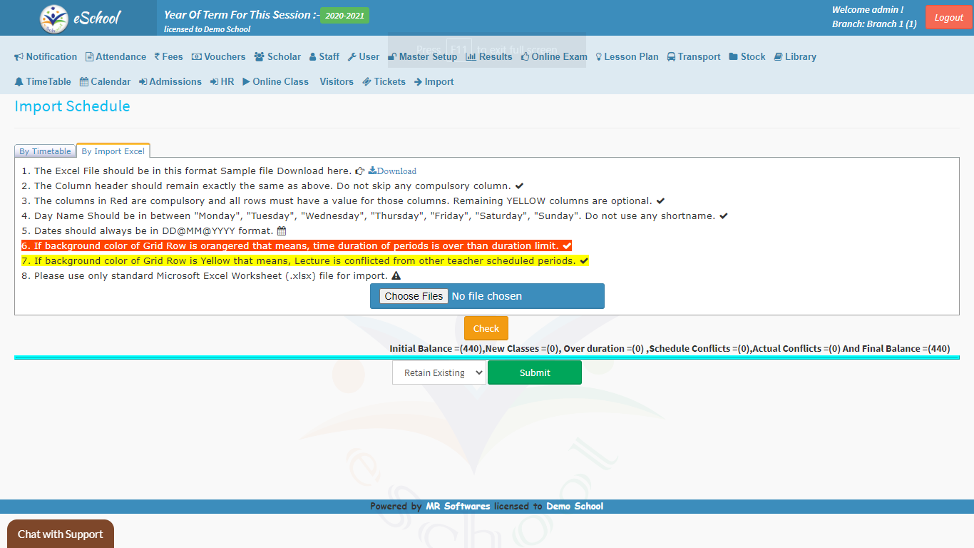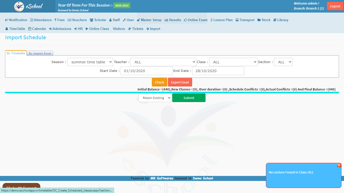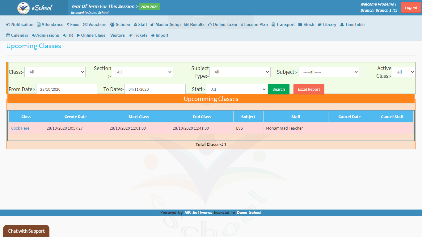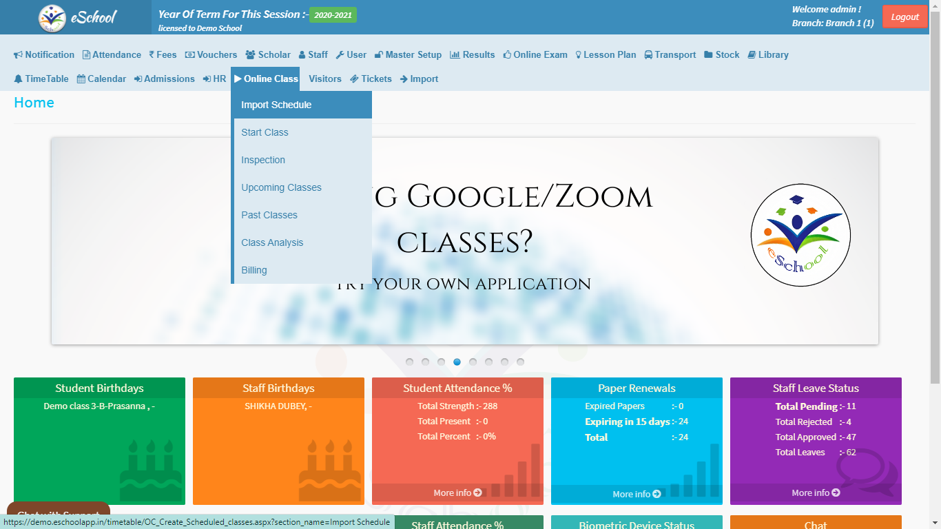 • Import Schedule: You can import the schedule for the online classes well in advance to keep yourself and the staff well ahead and prepared. We can schedule training for your teachers accordingly to ensure that your team is well-trained.Start Class: This feature is the ‘Power On’ button of the module, all the scheduled classes can be started here at the scheduled time. Every Class is scheduled for 40 mins by default.