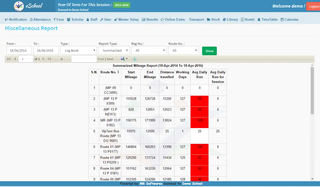 Report :- As the name denotes, this segment is used to take out various reports related to the transportation and its maintenance. This proves to be very beneficial for the school authorities as they do not have to do all the typical and time consuming paper work to maintain all the records of transportation. Reports like Maintenance Report, Miscellaneous Report etc can be taken out.