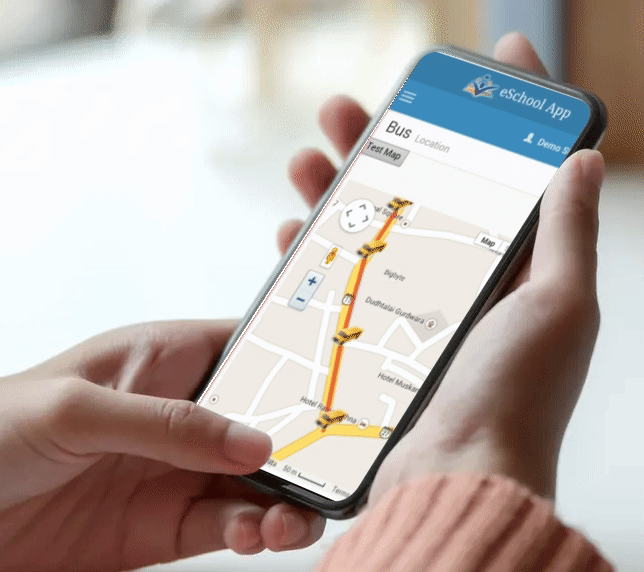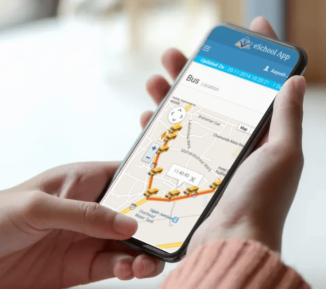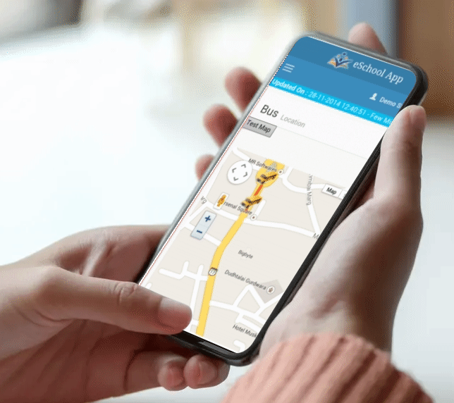 Bus Tracking : School Authorities and Parents can track the school bus on a map and get notifications for events that matter.
