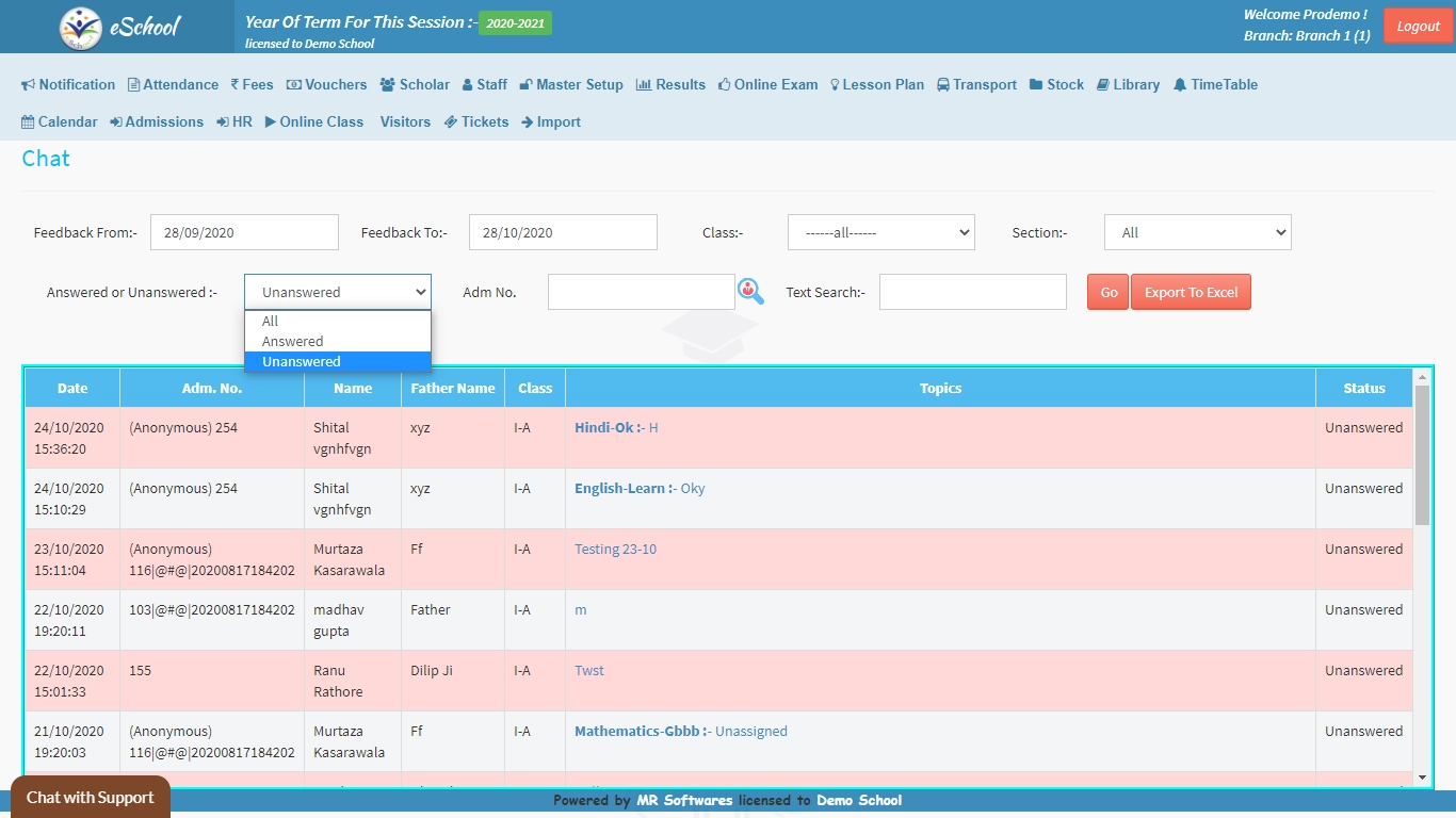 eSchoolApp assorts all your messages rather than clogging your inbox like WhatsApp and telegram, every thread is assorted by modules and type of inquiry making it easier to address and track.