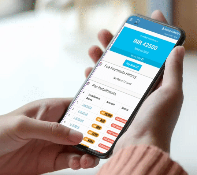 In short, parents can make fee payments via mobile. Similarly, track fees schedule, the fee paid, upcoming installments, and moreover pending installments for all the fees to be paid.