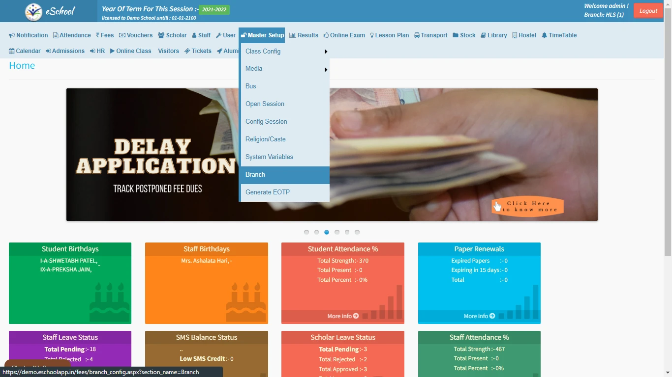 • Bird eyes view: Get a complete and comprehensive view of all multiple branches get detailed information on fee expectations and defaulters and much more.