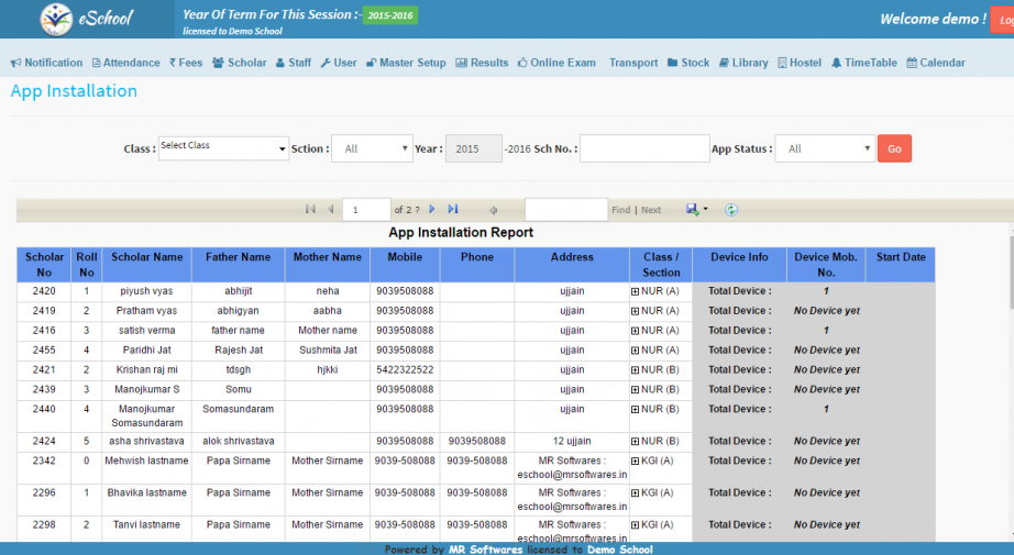 Search according to various filters provided such as Class, Sch No. or App Status(Installed or Not Installed).It will show you a report in which you can see detailed status of app installation. And you can also export the same report in various formats like Excel , PDF or Microsoft Word to keep the same report in your records.