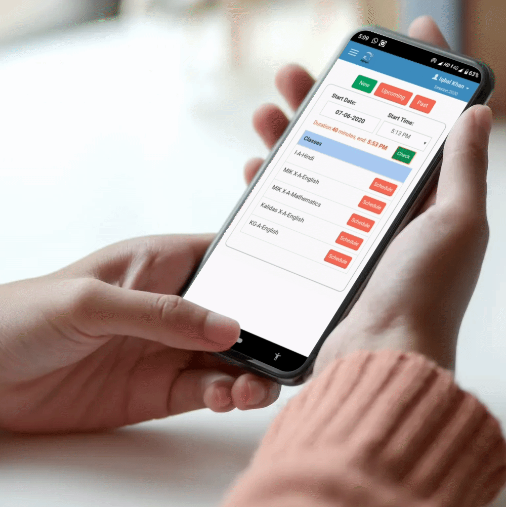 EASY TO CONDUCT ONLINE CLASS: With a user-friendly view of scheduled classes, the upcoming classes, the front and back cameras to make focus on the notes, whiteboard for the live notes writings. Enabling the audio/ video of the student to make it live interactive class, etc. It has become very easy for a teacher to conduct Online Class, through eSchoolApp.