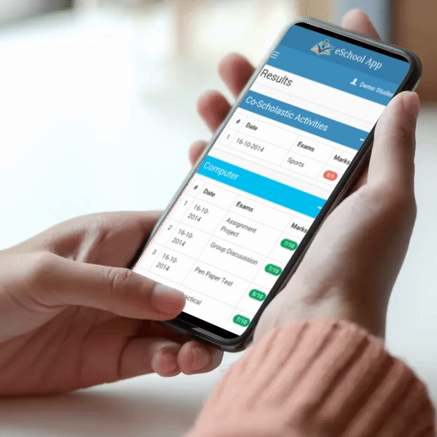 The process of education is a never-ending process of evaluation. More so with CBSE, ICSE, CBSE, and other major boards employing evaluation mechanisms like CCE. For any given class, every day there are numerous class tests, Group discussions, peer evaluations, quiz competitions, MCQ exams, pen-paper tests print results, etc for various subjects. Now it is impossible to inform parents about all the results via printouts and counterproductive to inform them via SMS. The eSchool App is here to change this. It enables the schools to enter evaluation results as they happen and inform the parents in real-time. The App also enables the school to publish results in pdf, along with graphs and charts to help parents understand the scholar’s performance. eSchool also enables the school to prepare mark sheets, ready to be printed, sealed, signed and handed over to the students. It produces numerous administrative reports to identify missing mark entries, grades, failures, absentees, weighted average reports.