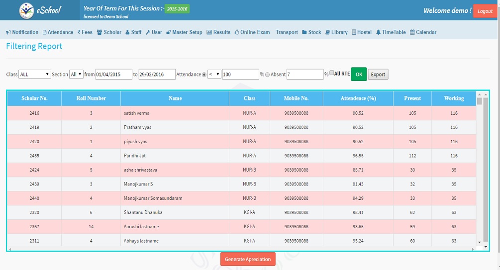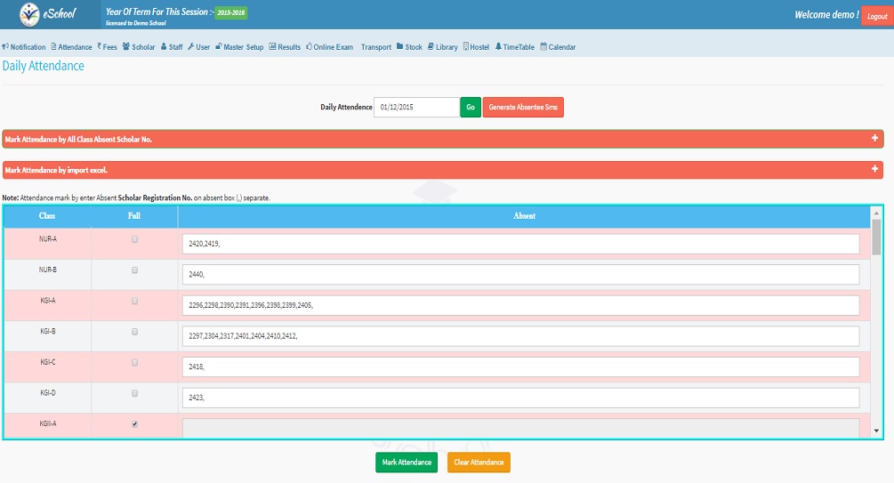 Every class teacher will only mark attendance for the assigned class and it’s so easy that you just need to mark absent students.