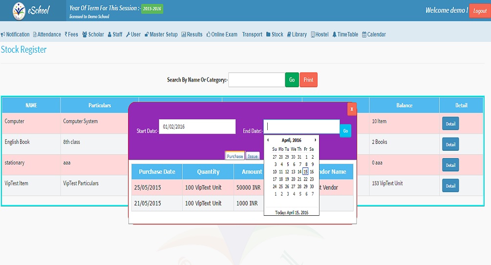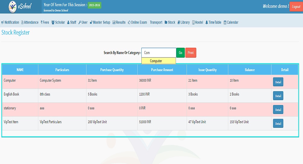 • School Shop – School shop allows you to sell the products in your inventory; it’s like an instant cash register if you are taking payments in hand. You can add the partial or complete due to the fee for deferred part/full payment with a fee. Multiple templates of receipts to choose from every report available over application and ERP.