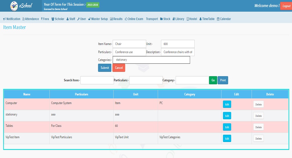 • TemplatesPredefined templates in the system can ease the administrator task. It helps the admin or associate person to apply the template to individual students. Various templates can be created depending on the categorization made up, such as school kits, stationery kit, uniform kit, and much more.