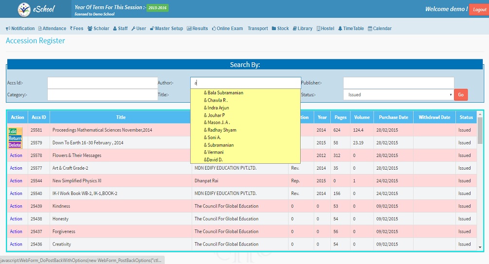 Students can check the availability, of the books online and can issue it accordingly.